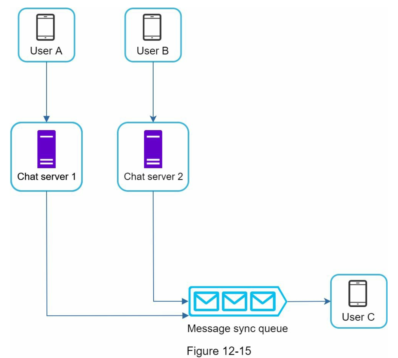 - 채팅 서버 1은 메시지를 메시지 동기화 큐로 전송